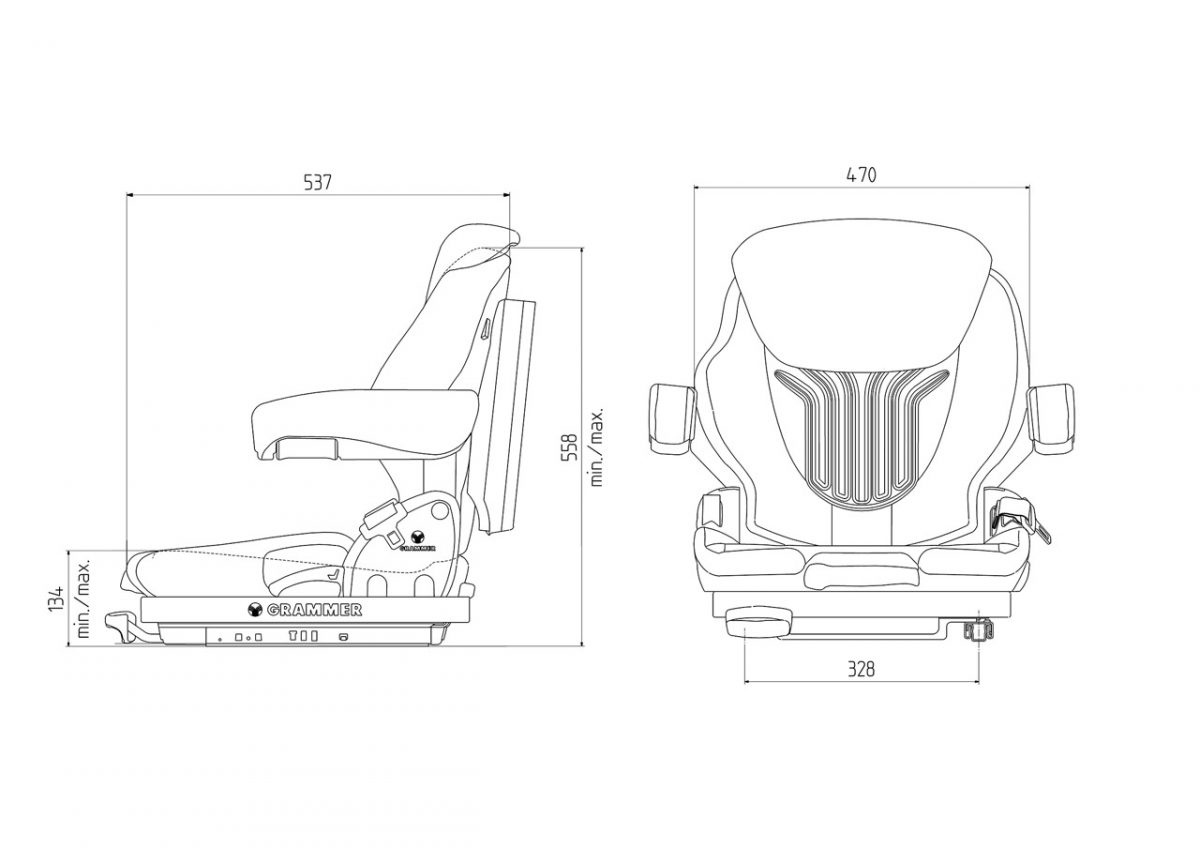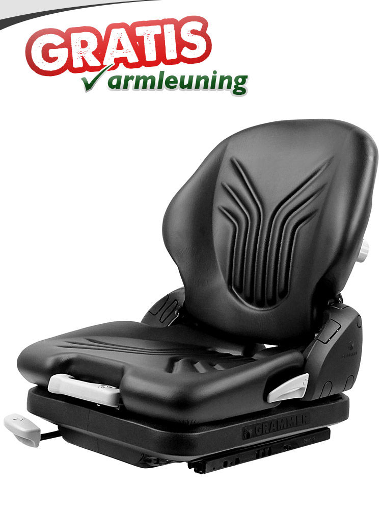 De Grammer Primo M (MSG65/521) is een luxe en comfortabele heftruckstoel voor langdurig gebruik. Deze populaire stoel beschikt over een laag mechanisch veersysteem en is in gewicht verstelbaar van 45 tot 170 kg. Dankzij de mechanische lendensteun en de verstelbare rugleuning (-5 tot +30 graden) biedt de stoel optimale ondersteuning en zorgt voor een goede houding van de chauffeur. Deze luxe stoel voor is geschikt voor heftruck, verreiker, reachtruck, shovel of soortgelijke industriële voertuigen. Optioneel is de stoel onder andere leverbaar met luxe armleuningen, rugverlenging, stoelverwarming en horizontaalvering. Tevens is de stoel ook verkrijgbaar in stoffen bekleding. De Grammer Primo M (MSG 65/521) is geschikt als heftruckstoel voor alle merken, waaronder Linde, Toyota, Still, Doosan, Clark, Jungheinrich, Hyster, Yale, UniCarriers, Manitou, Mitsubishi. Daarnaast is de Primo M stoel ook geschikt voor diverse bouwmachines, zoals een Knikmops shovel.
